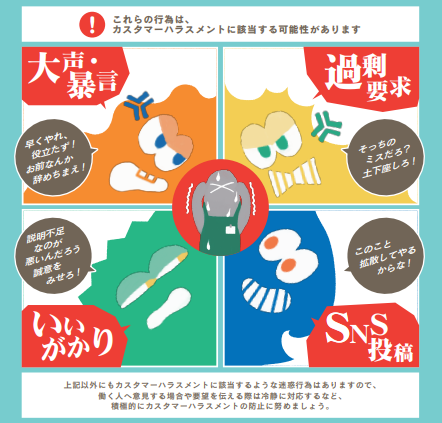 お客様には、丁寧な対応をお願いするとともに、暴言や理不尽な要求は控えていただくようご理解をお願いしています。