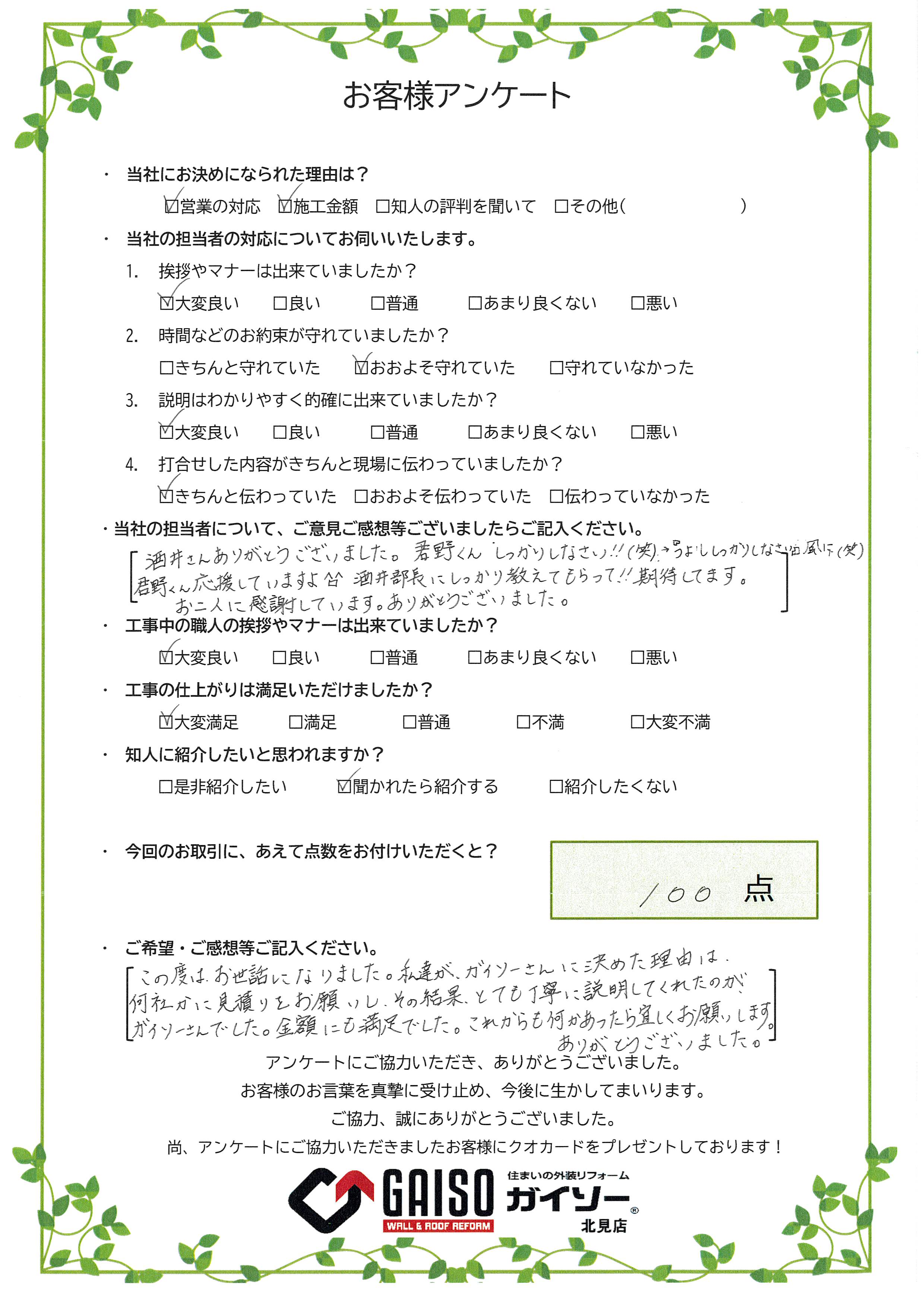 ・工事の仕上がりは満足いただけましたか?