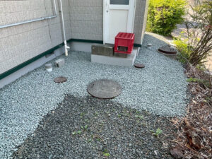 また、使用していない煙突は板金で巻き、家まわりの砂利も敷き直しました。
