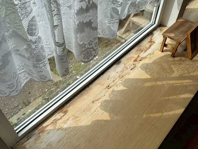 サッシの結露によって、窓台カウンターやクロスが腐食し、カビが発生していました。